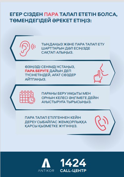 Егер де сіз сыбайлас жемқорлық фактілерімен кездессеңіз біздің колл орталығына хабарласыуыңызды сұрраймыз