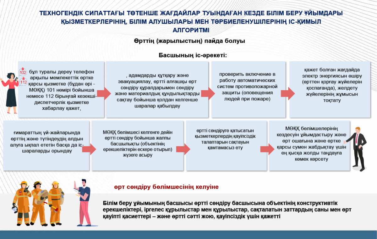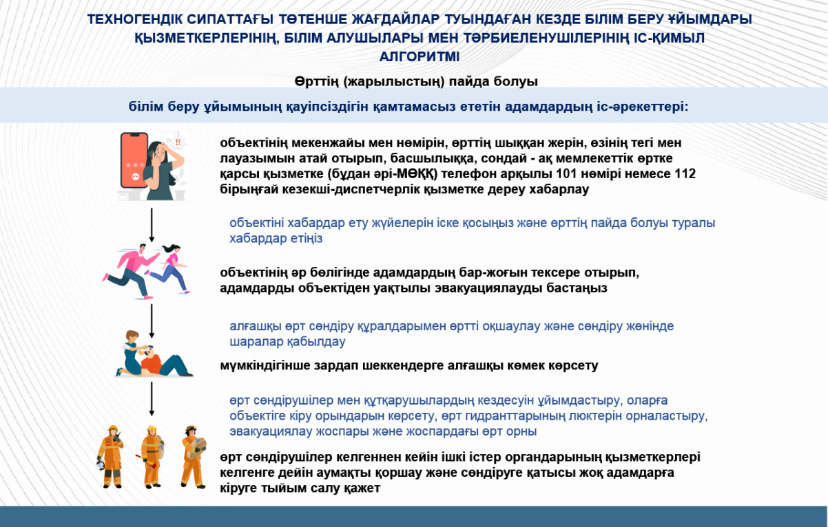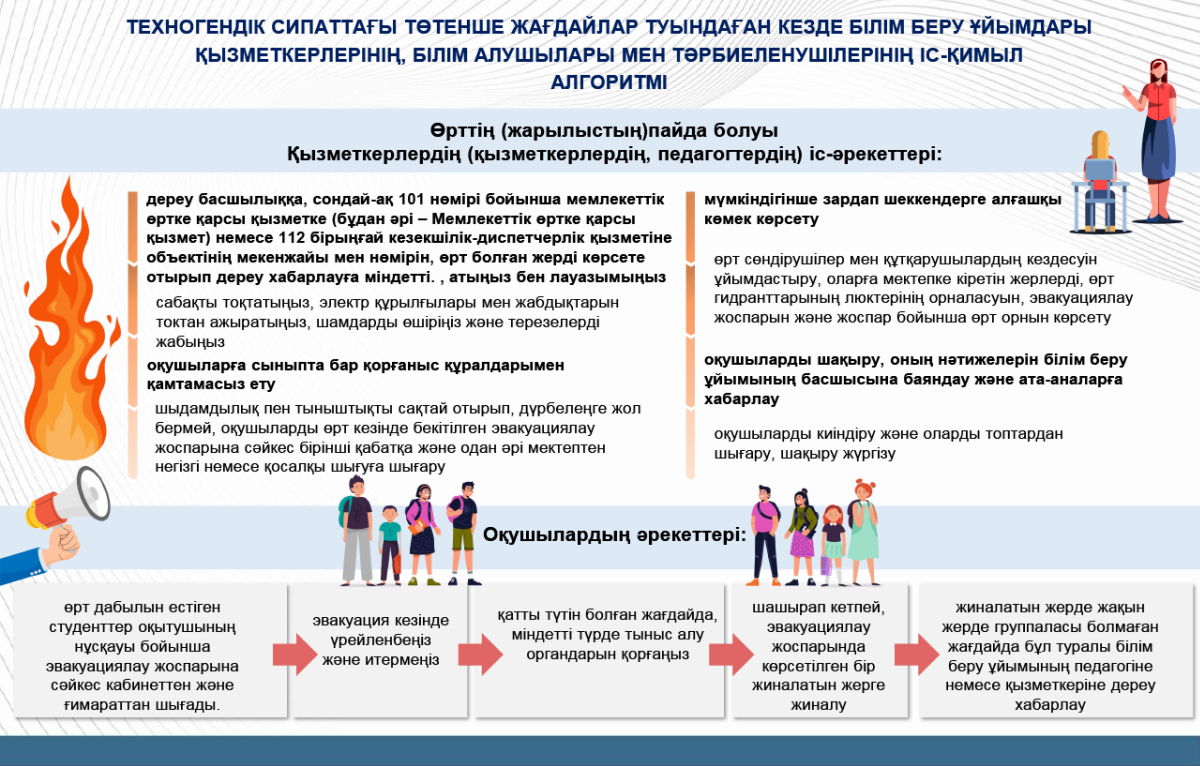 Мекемеде педагогтар мен білім алушылар үшін шұғыл эвакуациялау бойынша оқу жаттығулары ұдайы ұйымдастырылады. Мұндай іс - шаралар штаттан тыс жағдайларда іс - қимылдың нақты алгоритмін жасауға көмектеседі, қауіпсіздік мәселелеріне жауапты көзқарасты қалыптастырады және әркімге өзін сенімді және қауіпсіз сезінуге мүмкіндік береді.