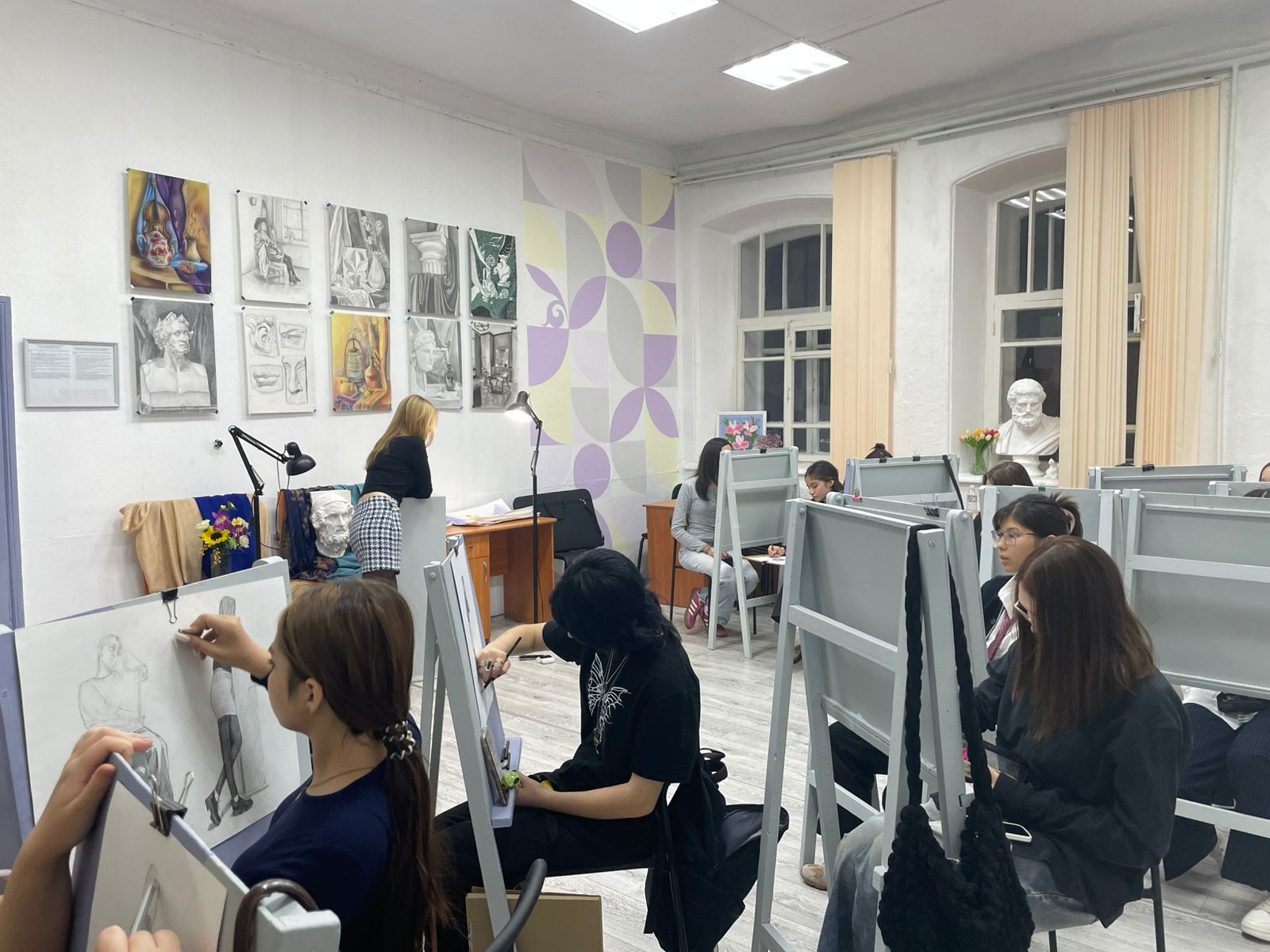 Учащиеся старших классов художественной школы посетили мастер - класс художницы Айтуаровой Рейхан