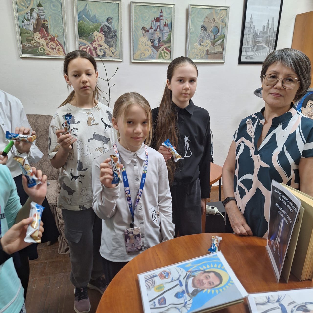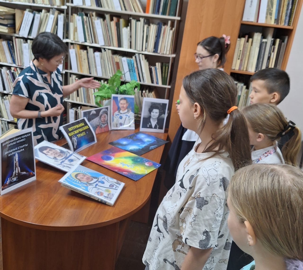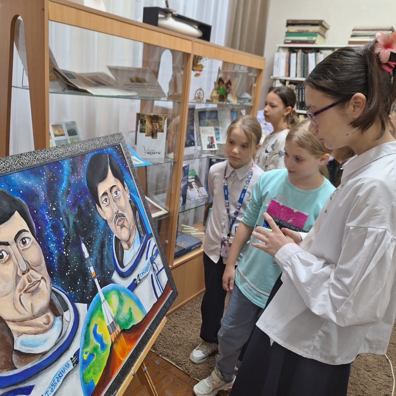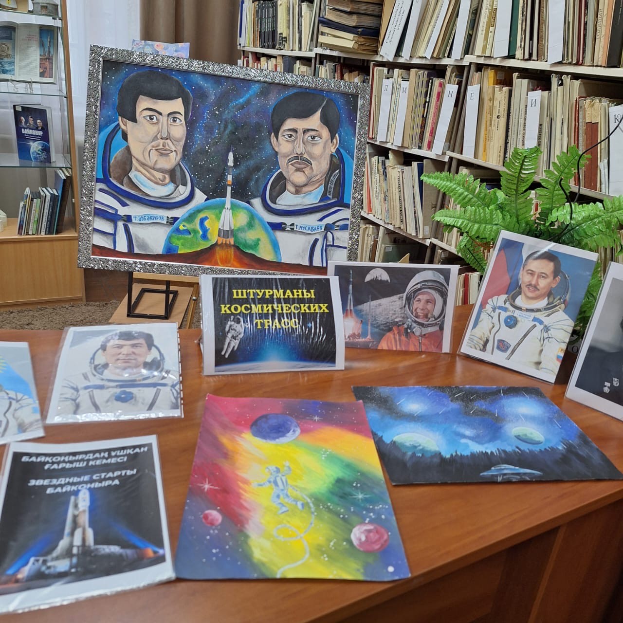 Всем известно, чем знаменательна дата 12 апреля - День космонавтики! В библиотеке художественной школы имени Никифорова А.И., проведено мероприятие для самых юных художников. Библиотекарь Айгуль Мурзахметовна подготовила тематическую выставку литературных произведений, репродукций, иллюстраций, работ художников на эту тему. В своей беседе она рассказала некоторые факты из истории освоения космоса. Подробнее остановились на биографии героев - космонавтов нашей страны. Ребята должны знать их и гордиться. Аубакиров Т. Мусабаев Т.Аимбетов А. герои - космонавты, которые совершили не один полет, несли огромный вклад в освоение космических пространств. Свои впечатления ребята воплотили в своих работах, выполненных в различной технике и различными материалами.