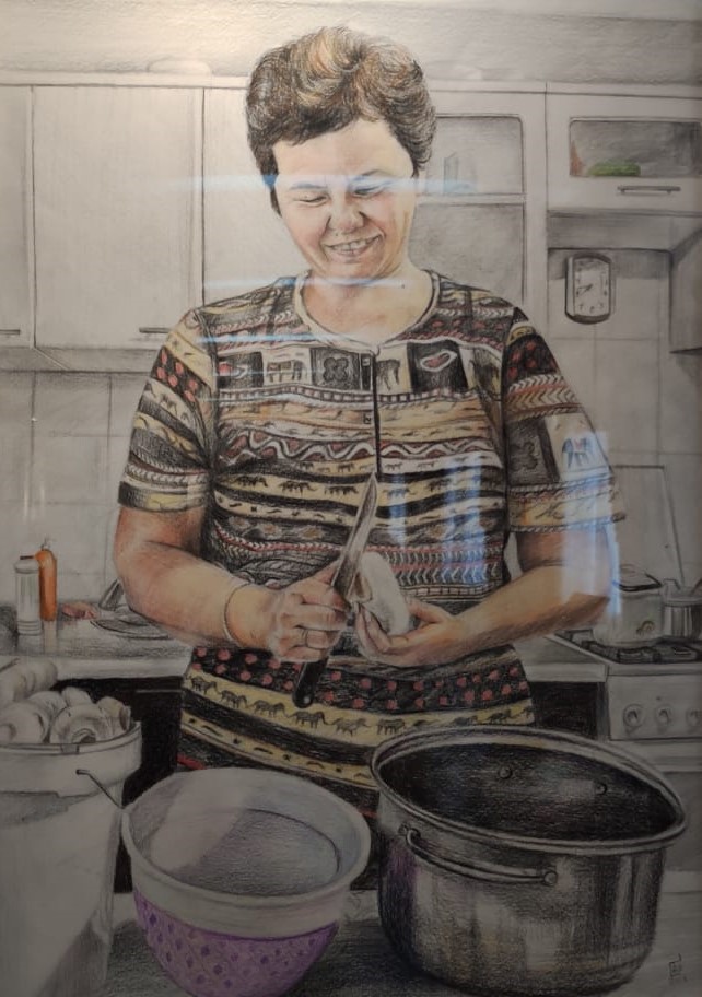 Мастер класс так же сопровождала уютная дружеская беседа, в которой молодой художник рассказала о своём творческом пути, о предпочтениях в сюжетах и материалах. Ребята, смело задавали волнующие их сердца вопросы о творческих моментах, очень заинтересованно наблюдали за лёгкими движениями руки художника, ведь на их глазах создавался портрет. Моделью портрета выступила сама Калинова Сая Нурлыбаевна - зав.отделом изобразительного искусства и организатор встречи.