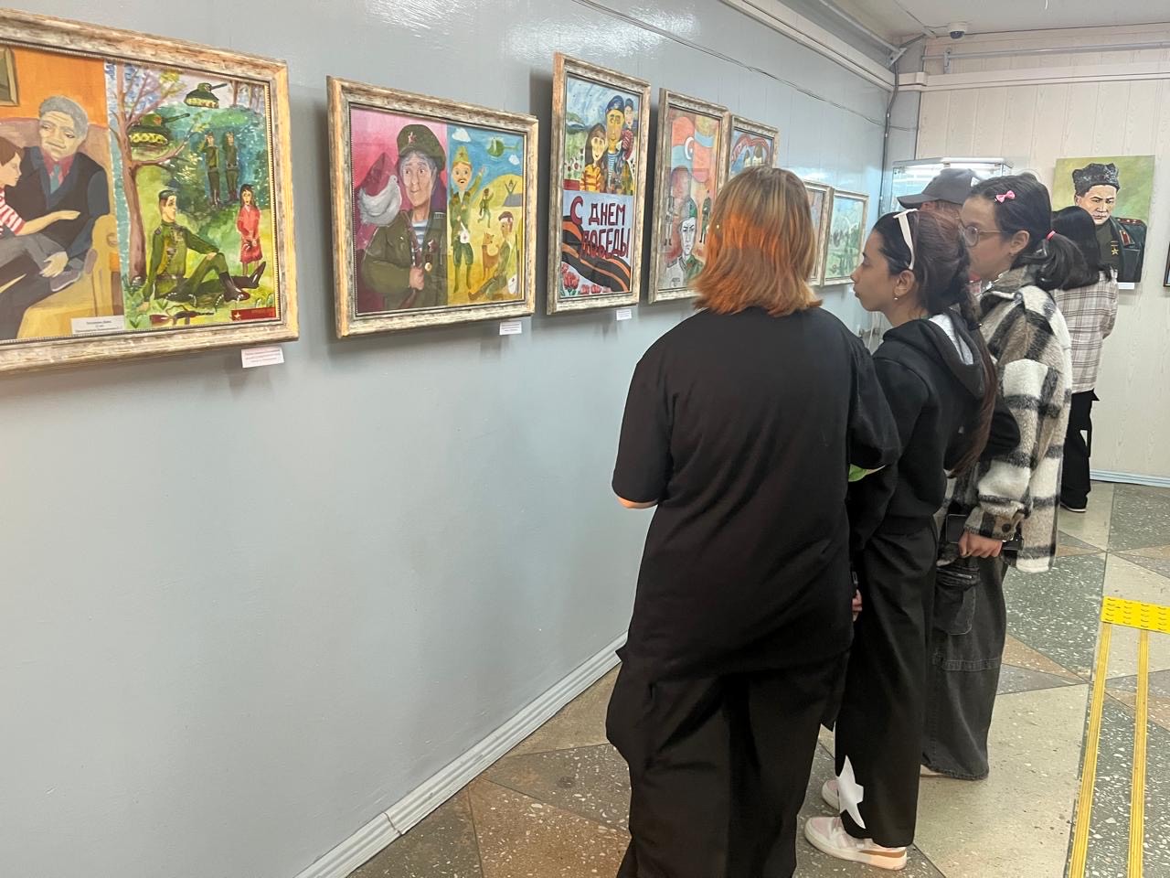 Ребята с большим интересом рассматривали работы, наполненные глубоким смыслом, теплом и памятью. Картины, выполненные как студентами КРУ им А. Байтурсынова, так и юными авторами художественной школы им АИ Никифорова передают не только хронику военных лет, но и силу духа, любовь к Родине и важность мира.