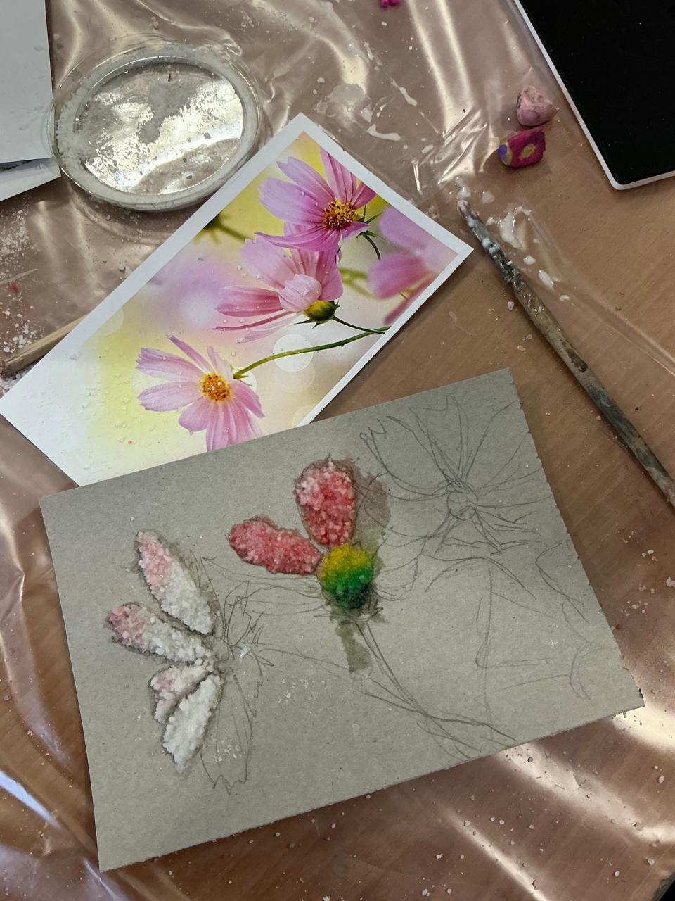 На занятиях по пескографии мы часто используем цветной песок. Но если его нет под рукой - отличной заменой становится цветная соль.