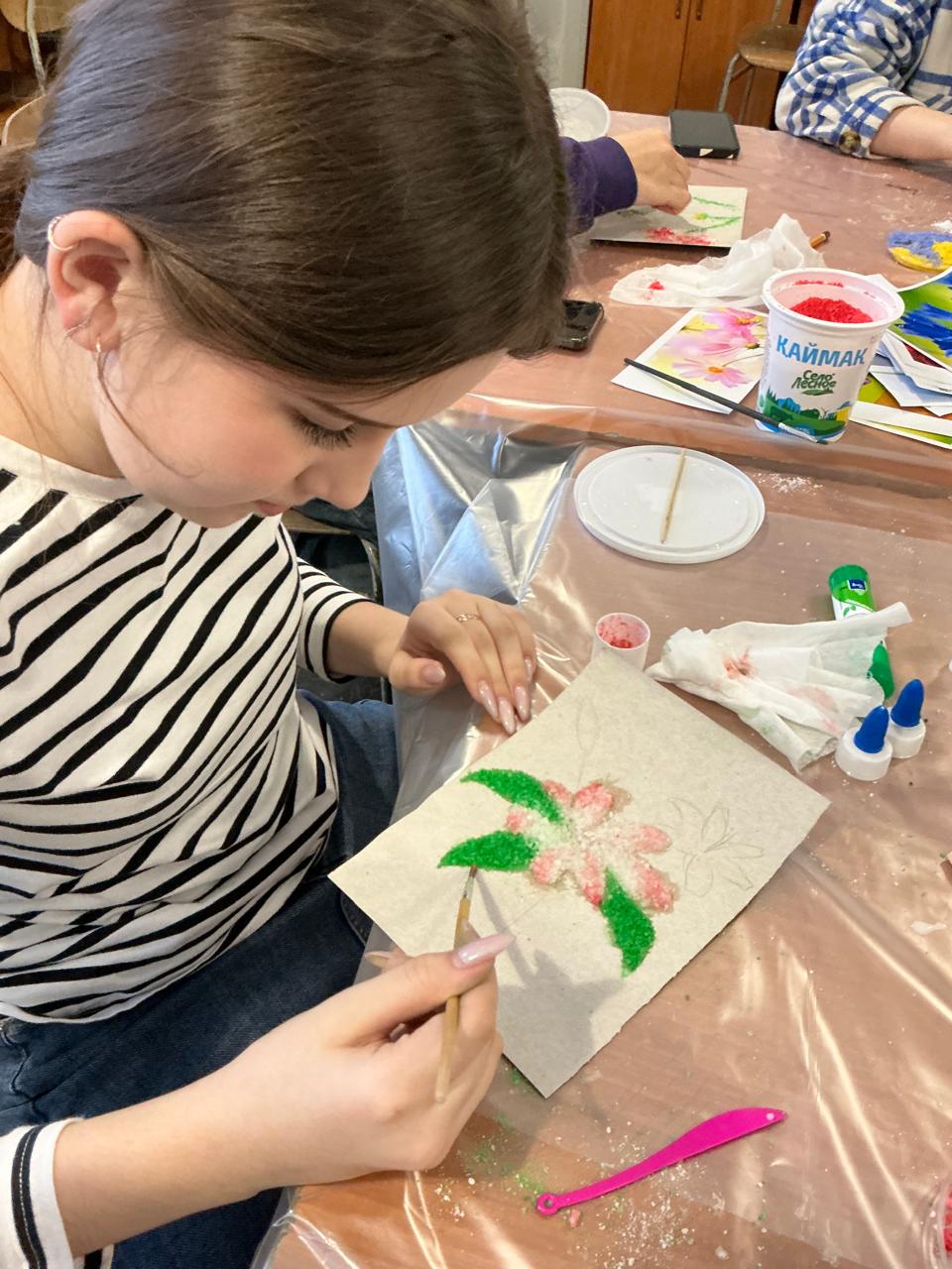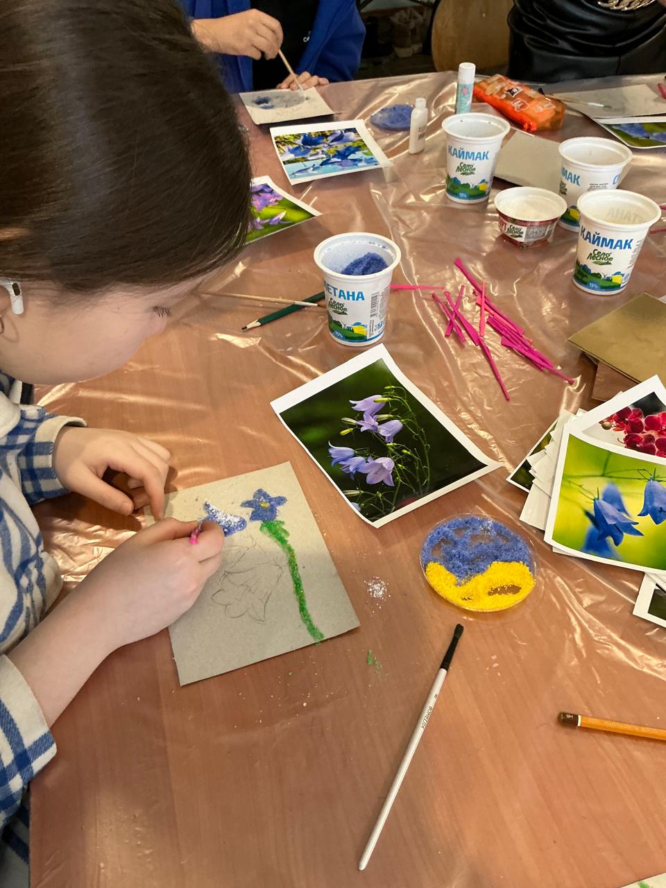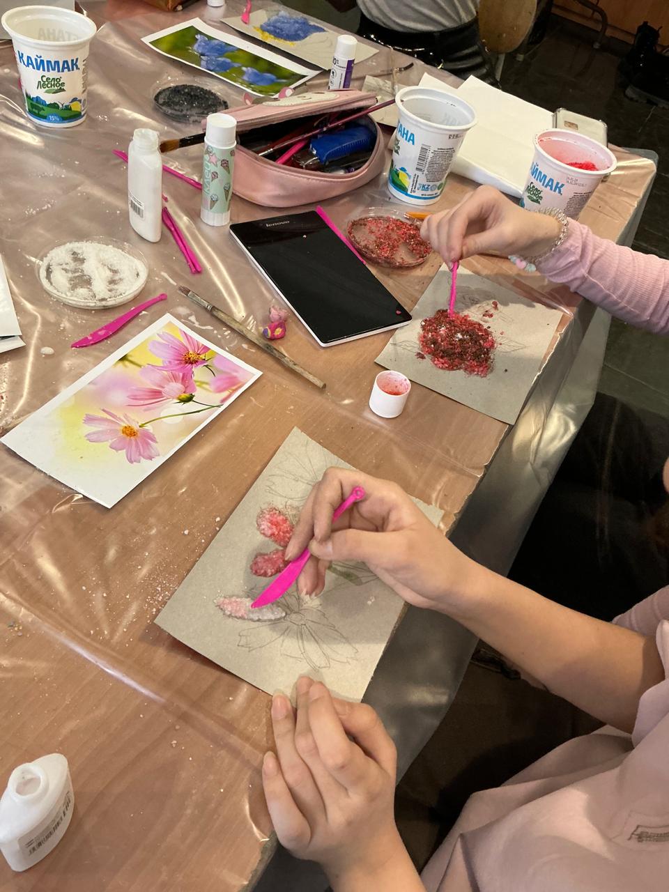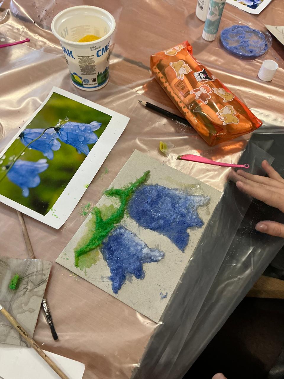 Мы с ребятами уже попробовали такой способ и создали летние панно, морские пейзажи и разноцветные цветочные поля. Цветная соль легко сыплется, держит цвет и дарит массу удовольствия в творческом процессе.