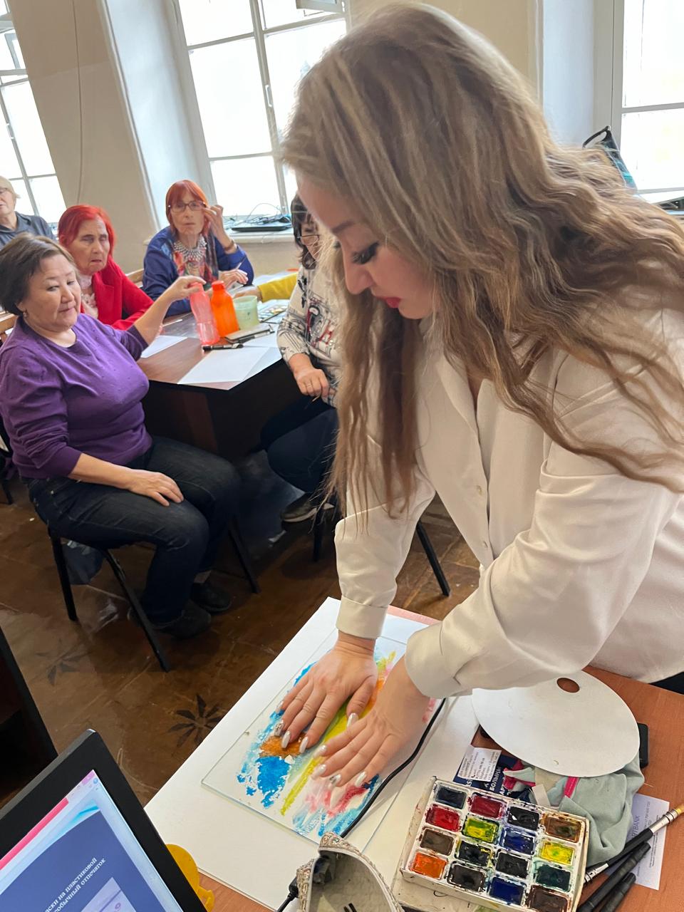 Участникам было предложено выполнить работу в нетрадиционной технике монотипия. Первый мазок краски гости наносили настороженно и аккуратно, но уже спустя какое-то время группа оживилась и на рисунках стали появляться яркие краски. Ни одна художественная композиция не повторяла другую, каждая была уникальная по-своему. По словам новоиспеченных художников, такое времяпрепровождение им очень понравилось, некоторые даже решили попробовать эту методику дома, с внуками. Значит, достигнута еще одна цель - теперь человек не будет скучать от избытка свободного времени, а проведет эти часы активно и позитивно.