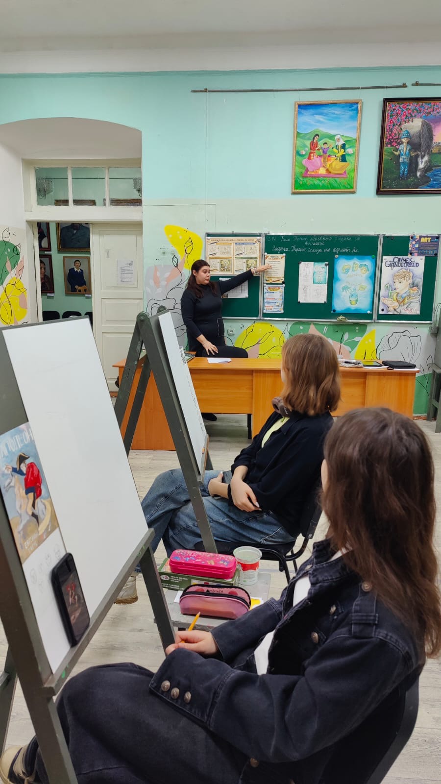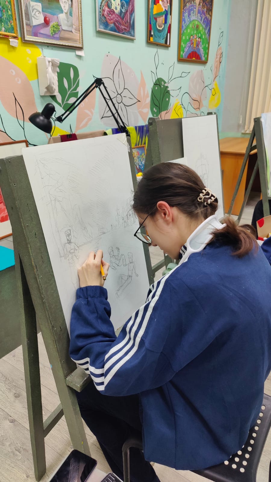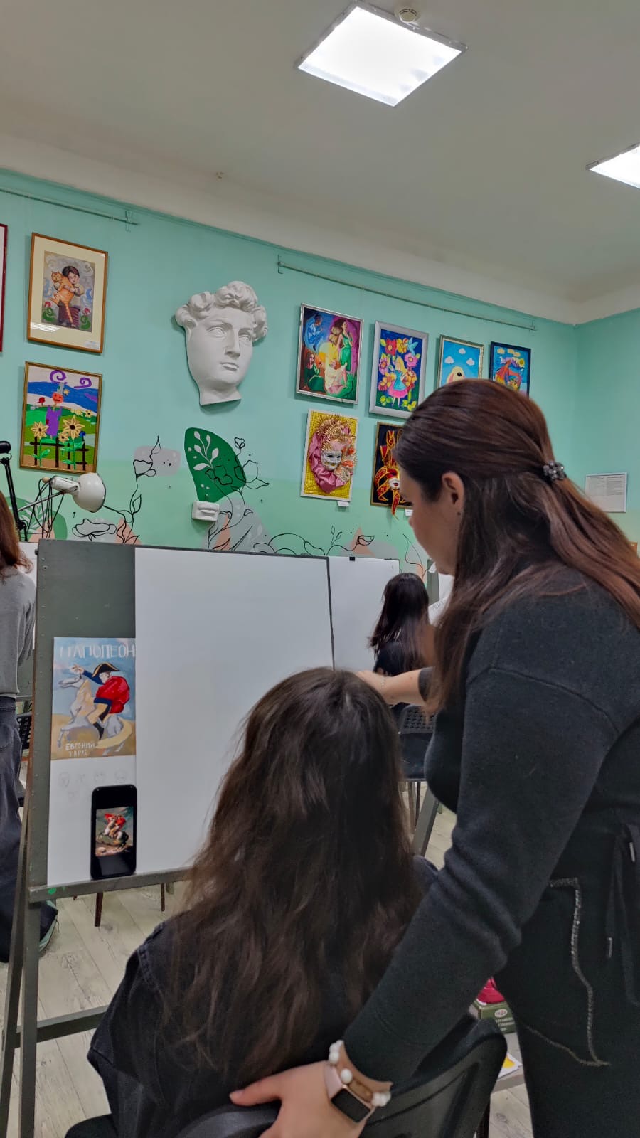 В ходе занятия учащиеся познакомились с различными способами переноса эскиза на формат при увеличении изображения, рассмотрели особенности каждого метода и возможности их применения в работе.