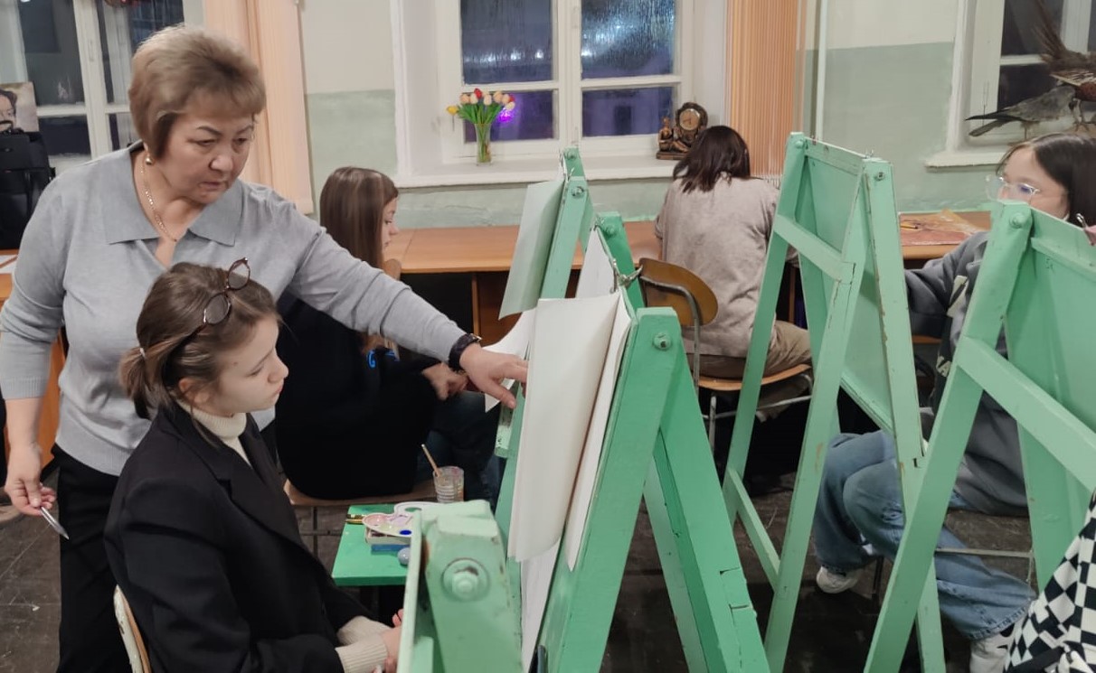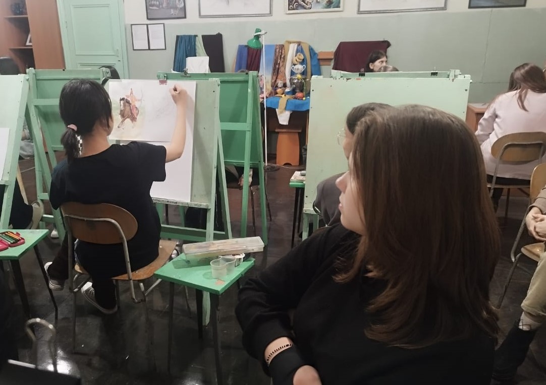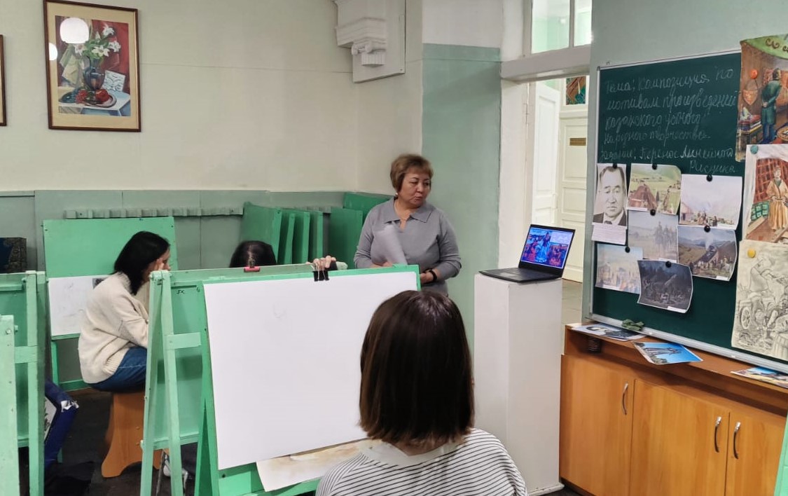 В КГКП «Художественная школа имени А.И.Никифорова» в середине ноября, преподаватель изобразительного искусстваАбитова Айгуль Сапабековна, провела открытый урок по предмету «Станковая композиция».Тема открытого урока: «Композиция по мотивам произведений казахского устного народного творчества».