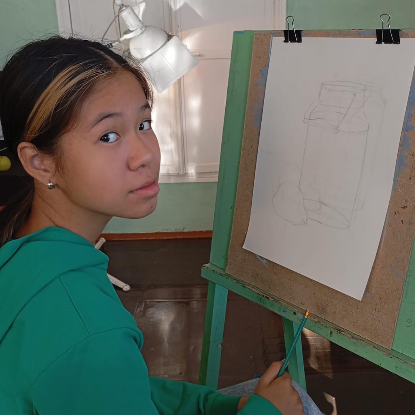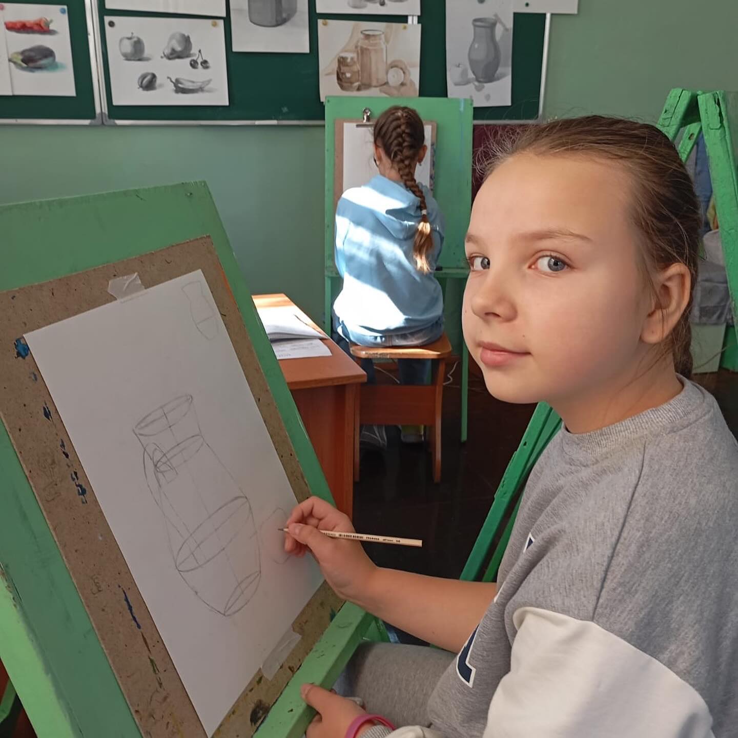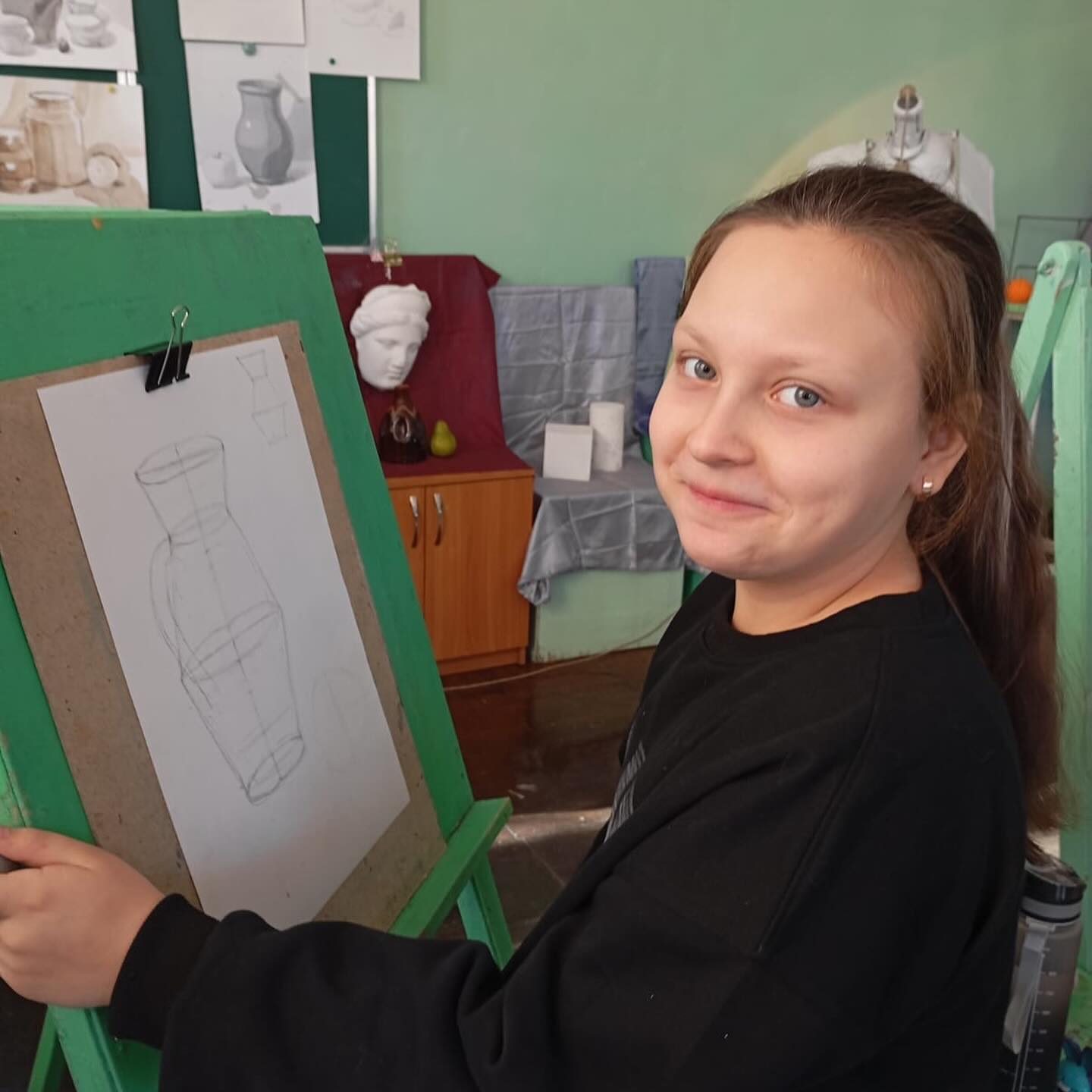 Техника «Гризайль» для художника - это возможность прочувствовать тональность, оттенки в пределах одного цвета. Видеть богатое многообразие тонов, которое помогает передать на холсте объём и натуралистичность изображаемых объектов. Перед выполнением натюрморта в технике «Гризайль» ребята первого класса выполняют линейно-конструктивное построение натюрморта, которое подразумевает построение предметов с учётом их перспективного расположения в пространстве.