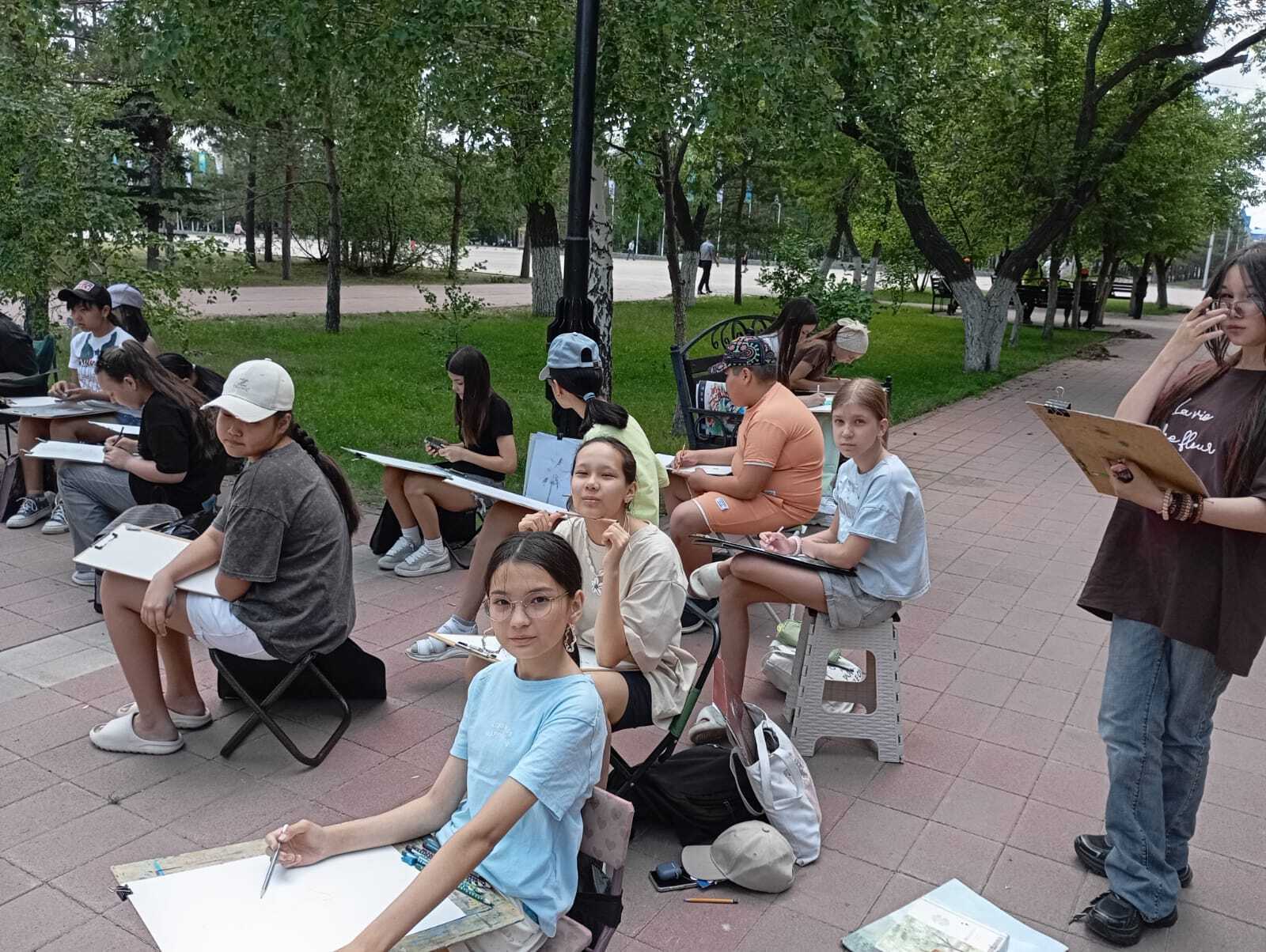В начале лета в КГКП ”Художественная школа имени А.И.Никифорова” традиционно проходит летняя пленэрная практика на открытом воздухе. В отличие от занятий в учебных аудиториях, пленэр позволяет нашим юным художникам с большой точностью отображать на листах бумаги богатство окружающих красок и малейших изменений цвета натуры.